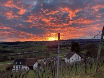 Ein Abend für alle Sinne - stimmungsvolle Abendwanderung durch die Rebberge von Iselisberg über Dietingen nach Uesslingen mit Ausführungen zu Kunst & Kultur.