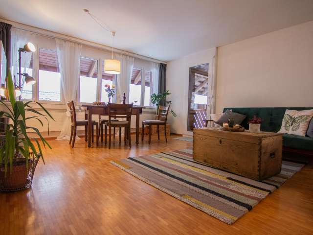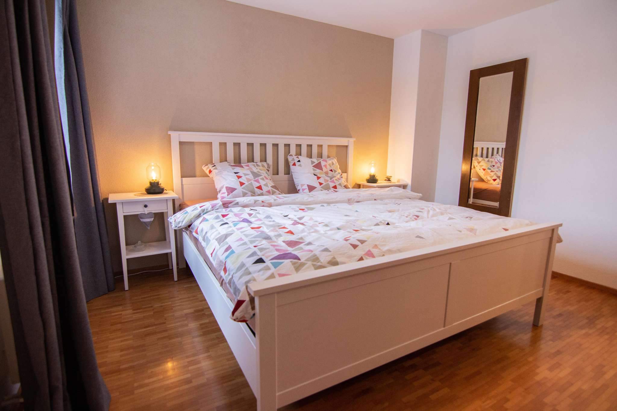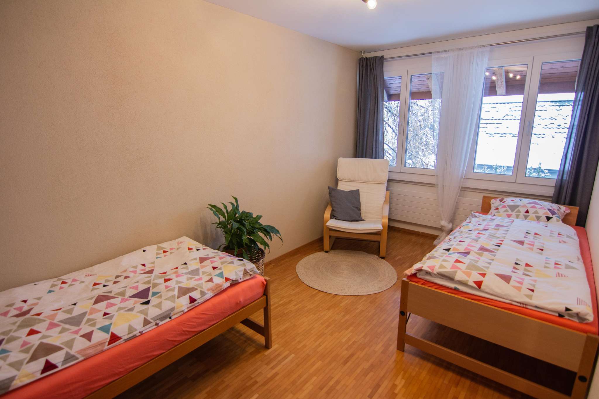 Die Dreizimmerwohnung ist mit einer Küche, einem seperaten WC, einem Bad mit Dusche und Badewanne, zwei Schlafzimmern, eins mit Doppelbett, eins mit zwei Einzelbetten, ausgestattet und lädt zum Erholen und geniessen ein. (Maximalbelegung: 5 Personen)