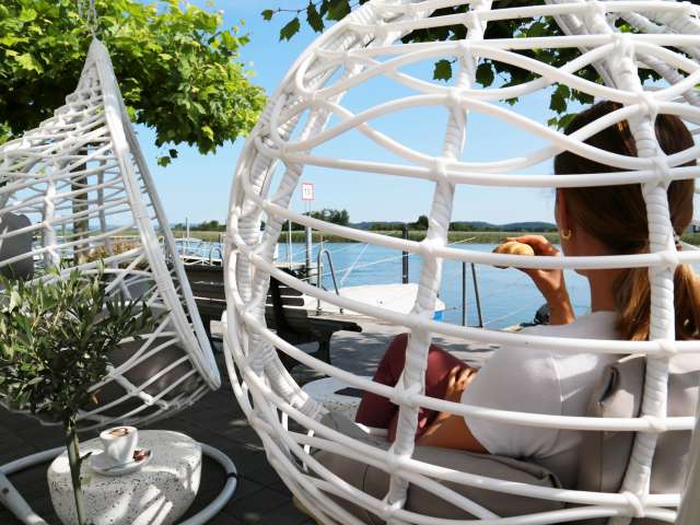 Direkt am malerischen Seerhein in Gottlieben lädt das Gottlieber Seecafé mit wunderschöner Außenterrasse zum gemütlichen Kaffeetrinken und Shoppen im Manufakturladen ein. Hier können bequem sämtliche Gottlieber Hüppen und Spezialitäten eingekauft werden.
