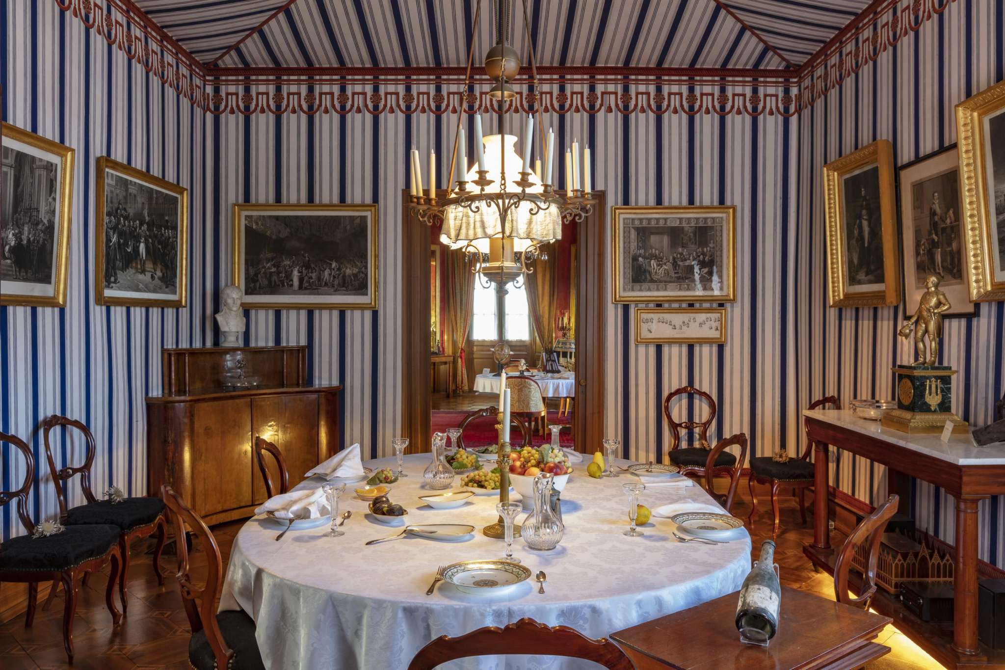 Nach dem Sturz Napoleons l. musste seine Stieftochter, die holländische Königin Hortense, aus Frankreich fliehen. Im Jahr 1817 kaufte sie das Schlossgut Arenenberg und machte es zu ihrem Exilsitz. Sie baute um und stattete die prachtvollen Salons stilsicher und mit viel Pariser Flair aus. Aus Frankreich brachte sie ihren siebenjährigen Sohn, Louis Napoléon mit, der hier im Thurgau am Bodensee aufwuchs und bis zu seinem einunddreissigsten Lebensjahr lebte. Danach gelangte er mit Umwegen zurück nach Frankreich und ging unter dem Namen Napoleon III. als letzter französischer Kaiser in die Geschichte ein. Seine Frau, Kaiserin Eugénie, erweiterte das Schloss um zusätzliche Salons. 1906 schenkte Eugénie das Anwesen dem Kanton Thurgau, der in dem Schlossgut ihrem Wunsch gemäss das Napoleonmuseum und eine Schule für die Thurgauer Landwirtschaft einrichtete. Beides besteht bis heute.