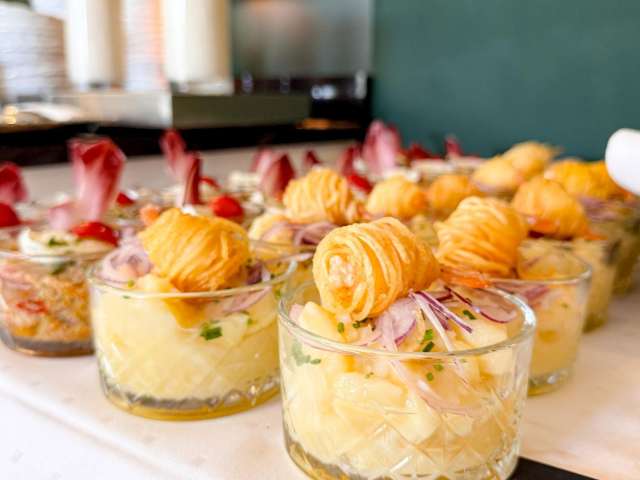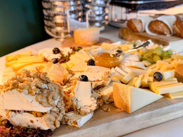 Am Mittag ergänzen wir das Frühstücksbuffet mit feinen Salaten, verschiedenen Fleisch,- Fisch,- und vegetarischen Gerichten. Zum Dessert werden Sie mit süssen Köstlichkeiten verwöhnt.