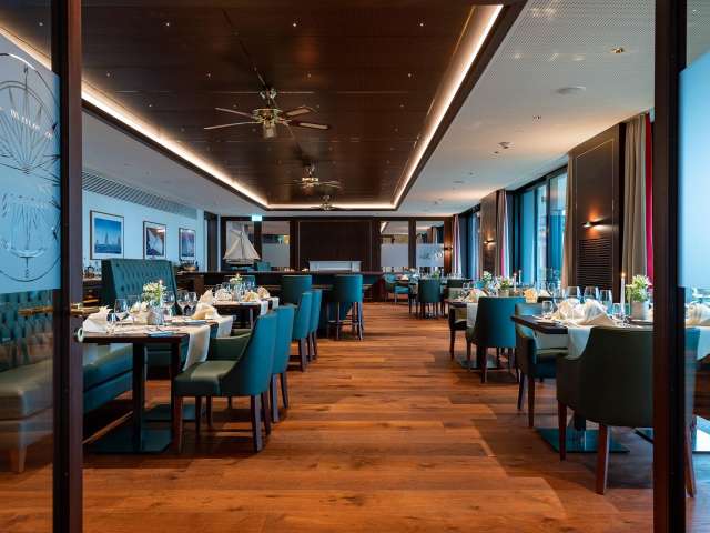 Das nautische Ambiente zieht sich durch das gesamte Hotel und wird mit Mahagoni und Messing unterstrichen. Ein Highlight im Bad Horn ist das Restaurant «Wave» mit 15 GaultMillau-Punkten. Hier werden regionale Zutaten mit Liebe zum Detail neu interpretiert. Aber auch Klassiker wie etwa Flambées, direkt am Tisch zubereitet, gehören zu den Spezialitäten der Crew. Edle Weine von lokalen Winzern und aus aller Welt runden das kulinarische Angebot ab.