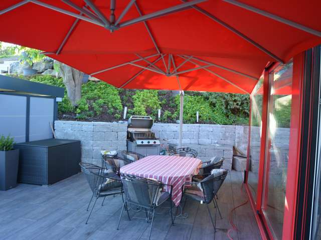 Dieses modern eingerichtete Studio liegt im südlichen Thurgau, in der Region Wil bei St. Gallen. Es erfreut mit komfortabler Ausstattung. Ein eigener Eingang, Sitzplatz und Grossbildfernseher stehen zur Verfügung. Verspannte Rücken werden von einem Whirlpool, Box-Spring-Bett, Massagesessel und Massagedusche verwöhnt. Auch für die Arbeit im Homeoffice ist das Studio ausgerüstet und verfügt über das elektronische Equipment auf neustem Stand. Im Sommer macht man es sich auf der sonnigen Terrasse gemütlich. Auch hier ist Arbeiten möglich. Ein geheizter Pool lädt zum Schwimmen ein. Kaffeemaschine, Teekocher und ein Kühlschrank stehen zur Verfügung. Verschiedene Snacks oder Getränke können gegen Gebühr bezogen werden, wobei nicht alkoholische aufs Haus gehen. Neben dem Frühstück wird auf Wunsch auch Mittag- oder Abendessen angeboten. Grill und Esstisch können mitbenutzt werden. Trotz der ruhigen Lage am Rande von Sirnach ist der Weg zum öffentlichen Verkehr kurz. Mit dem Auto erreicht man innerhalb von 10 bis 30 Minuten Wil, St. Gallen oder den Flughafen Zürich.