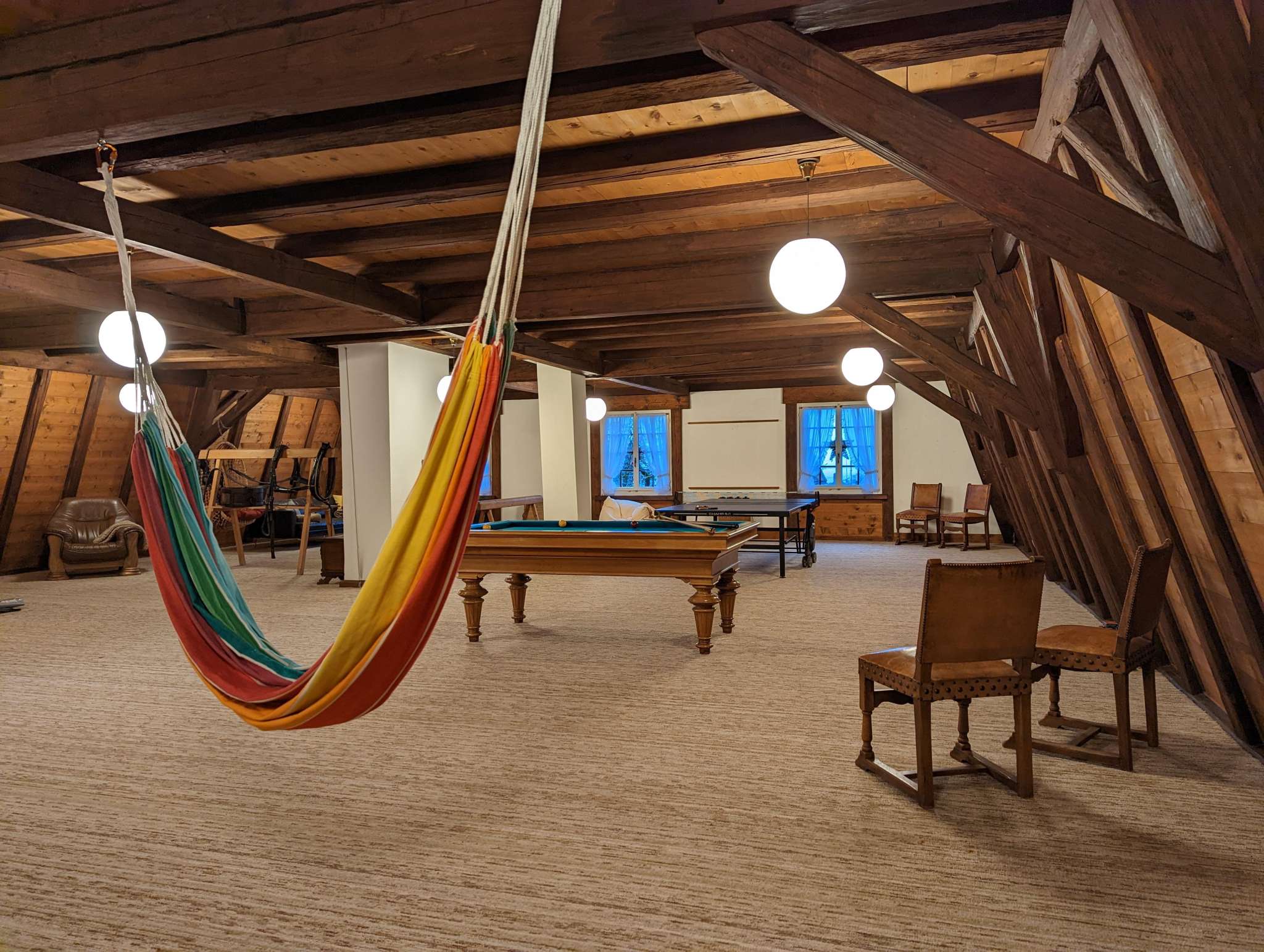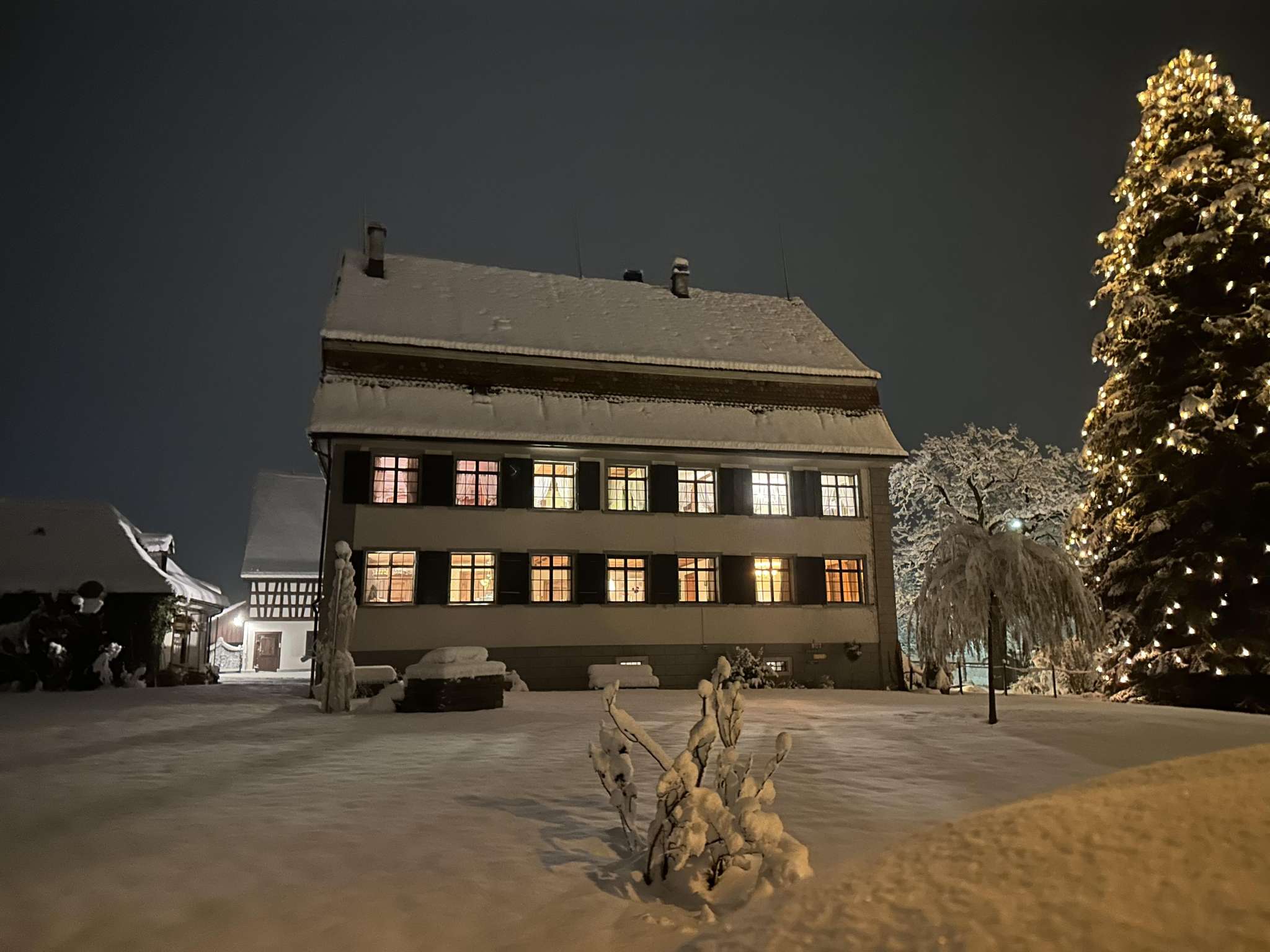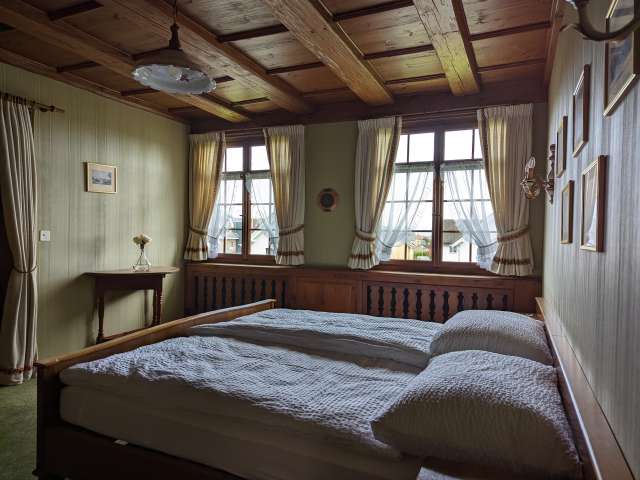 Das Schlössli Herrenhof in Langrickenbach wurde im 18. Jahrhundert als Sitz einer einflussreichen Familie erbaut, verfiel aber nach einigen Besitzerwechsel zunehmend. Eine Kreuzlinger Unternehmerfamilie erwarb und päppelte es wieder auf. Heute steht Schloss Herrenhof als Veranstaltungsort und prachtvolle Unterkunft Gästen zur Verfügung. Im Haupthaus gibt es fünf Doppelzimmer, eines davon im Dachgeschoss mit Blick auf den Bodensee. Der historische Kartoffelkeller eignet sich für Feste wie Hochzeiten oder Geburtstagspartys mit besonderem Ambiente. Ein riesiger Kamin (es darf gegrillt werden) und historische Einrichtung mit viel Holz erzeugen eine gemütlich rustikale Atmosphäre. Gaming-Raum mit Tischtennis, Billard und weiteren Spielen sowie ein riesiger Garten mit Gasgrill und viel Privatsphäre vervollständigen den Freizeitspass. Für zehn zusätzliche Gäste im Massenschlag bietet das Nebengebäude Platz. Im Erdgeschoss wohnen die Gastgebenden. Dennoch bleiben 600 Quadratmeter im Schlössli zur alleinigen Nutzung der Gäste.