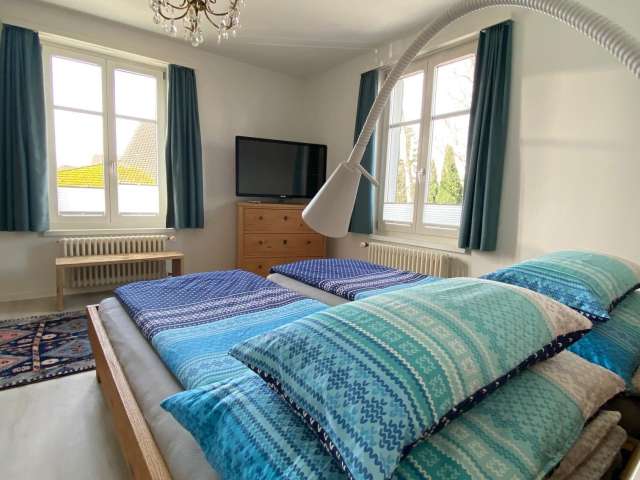 Die Gastgeber sind zwei humorvolle, offene und hilfsbereite Personen, die im selben Gebäude wohnen. Der separate Eingang über eine Aussenwendeltreppe führt direkt in die gemütliche und gut ausgestattete Wohnküche. Dort stehen ein Mikrowellengerät sowie eine Kapselkaffeemaschine mit einer Auswahl an Kapseln pro Übernachtungstag zur Verfügung. Es gibt auch eine Auswahl an Gewürzen, Tee, Essig und Öl.