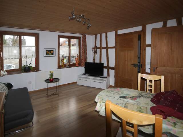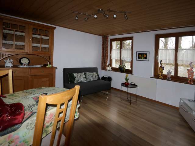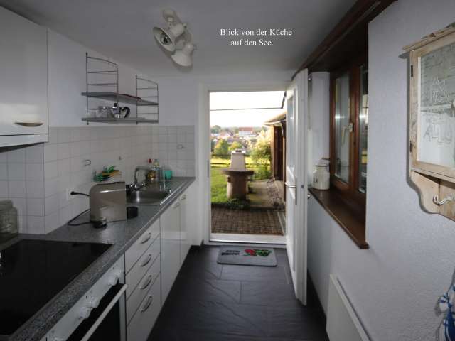 Die Wohnung umfasst zwei Zimmer, eines als Doppelschlafzimmer und eines als Wohnzimmer mit einem Bettsofa. Grosszügiges Bad mit Dusche und Küche. Grosser gedeckter Aussenbereich im Anbau mit Cheminée, auch geeignet für Raucher. Rasen mit Sitzplatz. Parkplatz für max. 2 Autos und Velos. Nur wenige Autominuten bis zu Geschäften, Restaurants, zwei Badeplätzen am See und mehreren Bahnhöfen sowie zur Fähre nach Deutschland. Ein idealer Ort für Aktiv-Urlaub. Die Besitzer sind sehr hilfsbereit, für Fragen offen und helfen gerne auch bei der Auswahl von Ausflugszielen. Haustiere erlaubt.