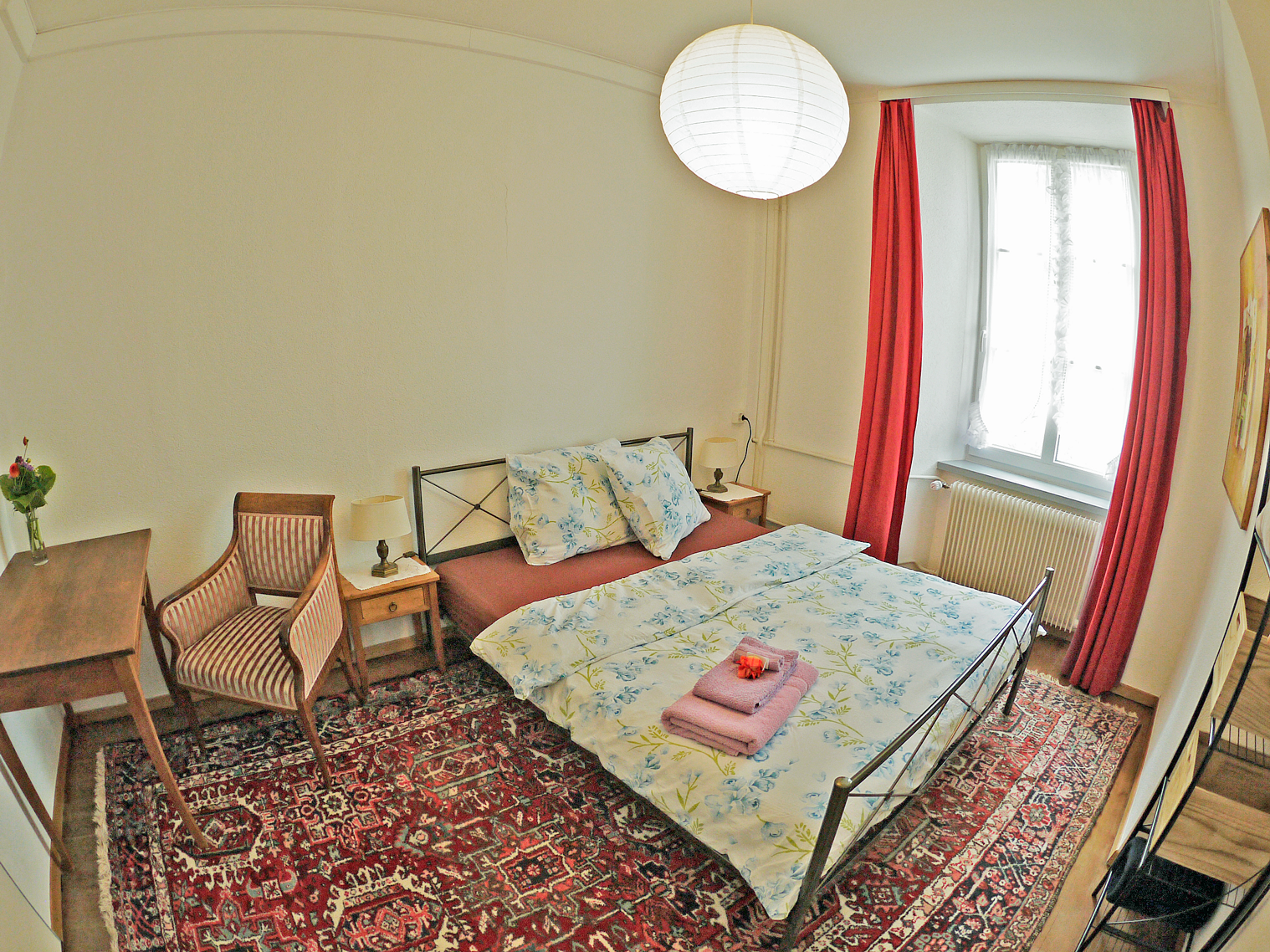 Den Gästen, die das Besondere schätzen, wird ein grosszügiger Wohnkomfort geboten: separater Eingang, Wohn-Terrasse, individuell möblierte Räume, gut ausgestattete Küche. Die Wohnung befindet sich in einem markanten Altstadthaus und verfügt über einen grossen Garten. Ob ein kurzer Aufenthalt für einen Besuch bei Freunden, die Teilnahme an einer Weiterbildung oder erholsame Ferien auf dem Land: Die Wohnung mit eigener Terrasse ist ein ruhiger Rückzugsort zum Entspannen. Gleichzeitig eignet sie sich ideal, um die herrliche Umgebung mit ihren vielfältigen Möglichkeiten zum Wandern oder Velofahren kennenzulernen.