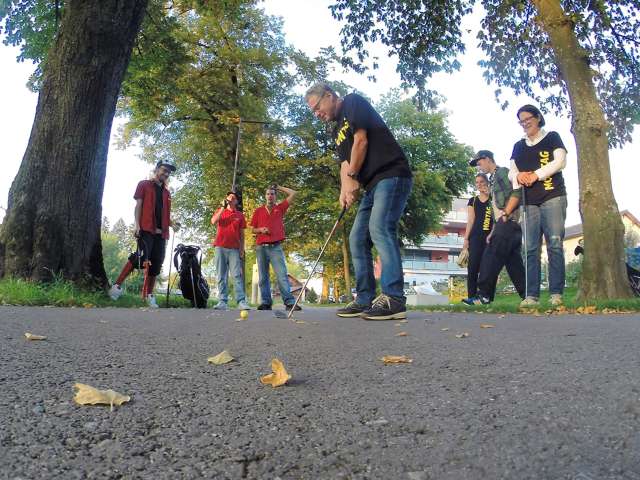 Diese neue Art des Golfens kann von allen ohne Vorkenntnisse gespielt werden. Wie der Name schon sagt, wird in urbaner Umgebung wie z.B. auf Grünflächen, industriellen Brachflächen, in Kiesgruben, in der Stadt etc. gespielt. Und anstatt auf ein konventionelles Loch zielt man mit den weichen Bällen auf ein Einkaufswägeli, Strassenschild oder auf was auch immer die Umgebung zu bieten hat (sofern ungefährlich). Nach einer kurzen Einführung in die Regeln des Urban Golf werden erste Probeschläge geübt an selbst gewählten oder vom Urban-Golf-Team organisierten Locations (z.B. Kiesgrube, Park, o.ä.). Jeder Teilnehmende erhält dazu einen Schläger und ein City Golf-Startset. In verschiedenen Gruppen wird dann der Parcours, der üblicherweise aus 9 «Löchern» besteht, bespielt. Auf Wunsch mit Apéro während der Einführung oder nach der Rangverkündigung.