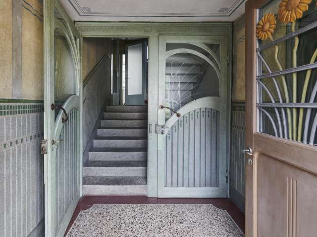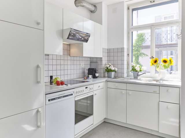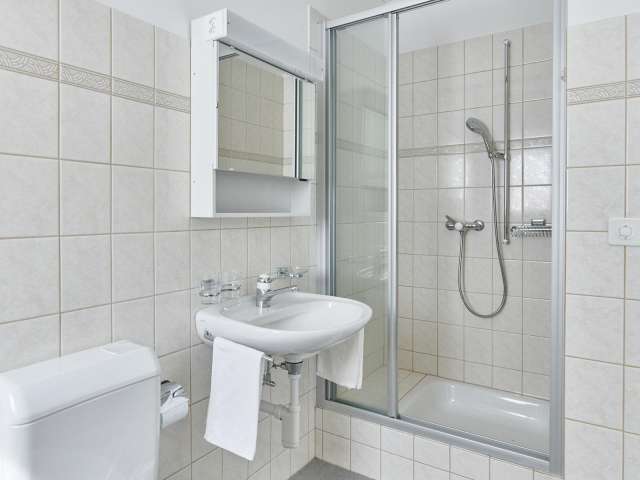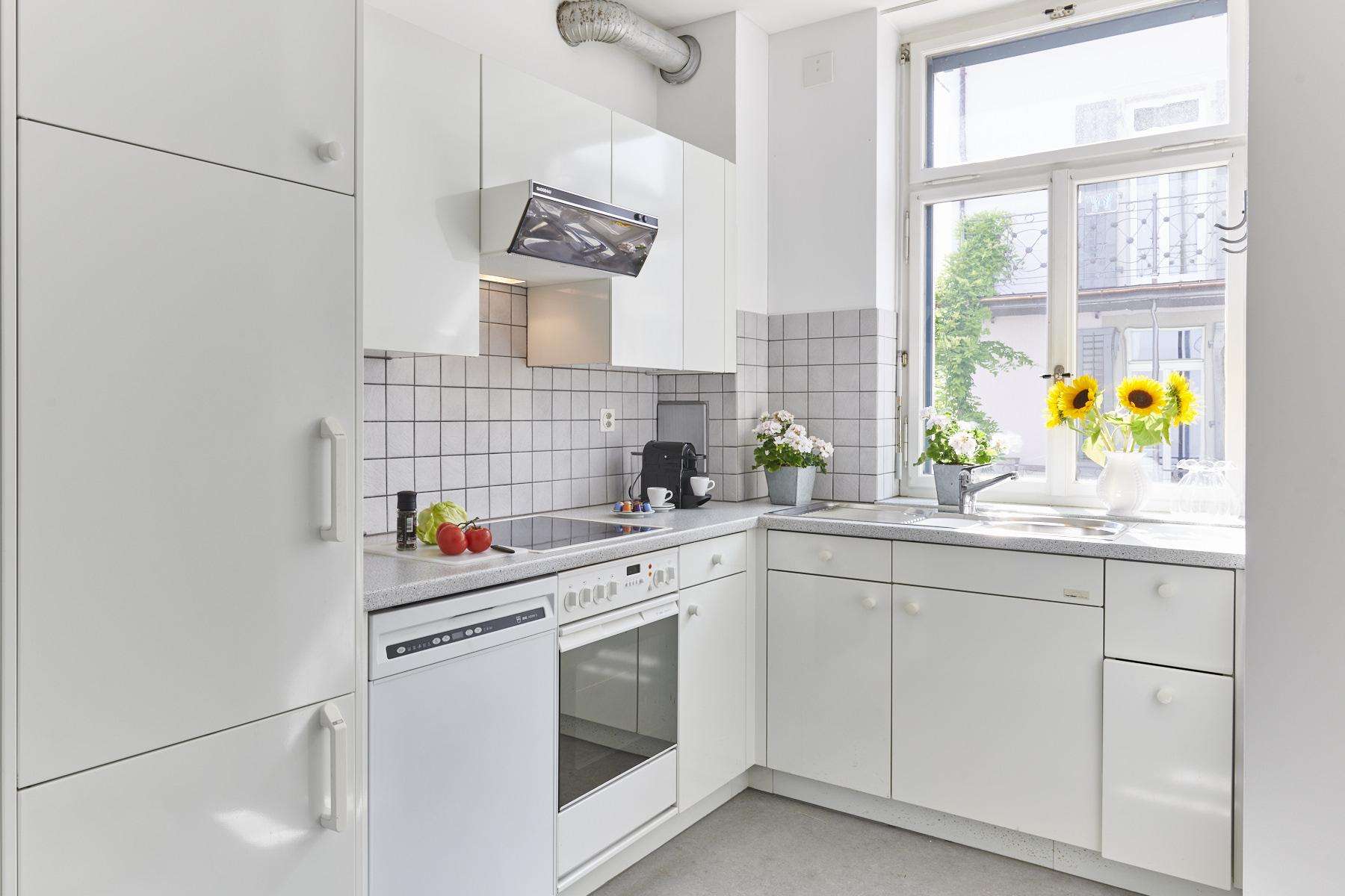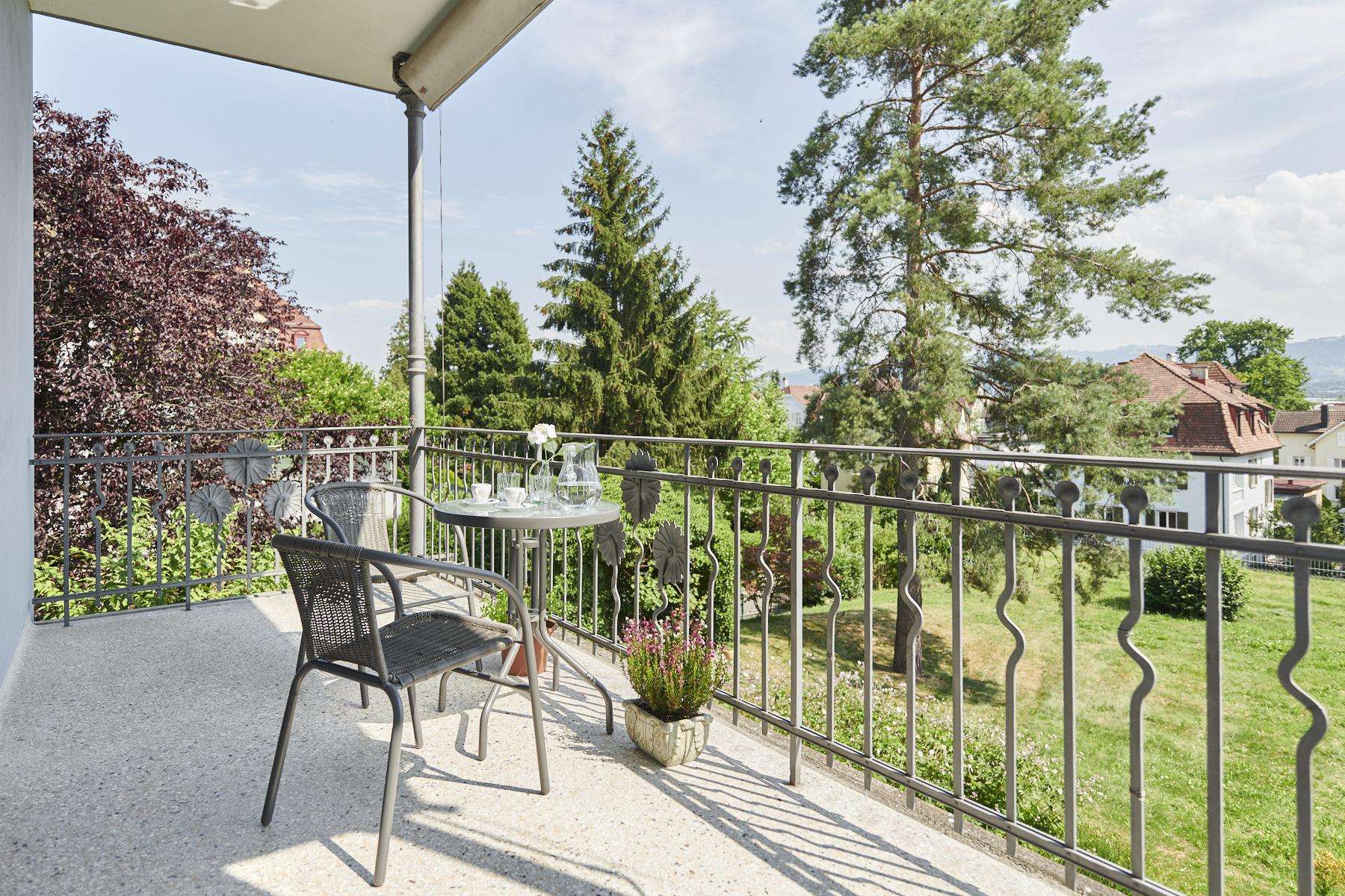 Das Max Burkhardt Haus bietet in der 2-Zimmer-Wohnung im ersten Obergeschoss Platz für 2 Personen. Ein grosser Balkon mit Blick in den Garten gehört ebenfalls zur Wohnung.