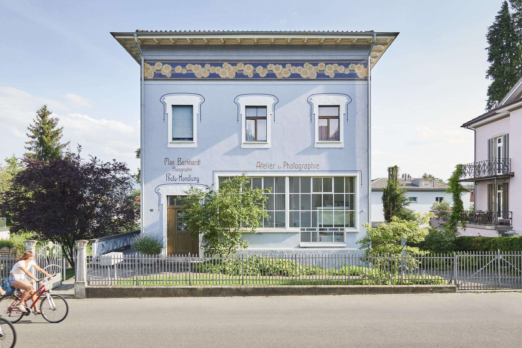Max Burkhardt (1876-1957) stammte ursprünglich aus Aarau, liess sich aber nach seiner Ausbildung als Dekorations- und Kunstmaler an der Kunstgewerbeschule in Zürich, München und Paris in Arbon nieder. Das Sonnenblumenhaus, das er in den Jahren von 1904-1910 nach eigenem Entwurf erbauen liess, ist in seiner Einheit aus Architektur, Innenausstattung und Kunstschaffen ein Gesamtkunstwerk. Das Haus diente ihm, seiner Frau und den drei Kindern bis zu seinem Lebensende als Wohnhaus und Kunstatelier.
