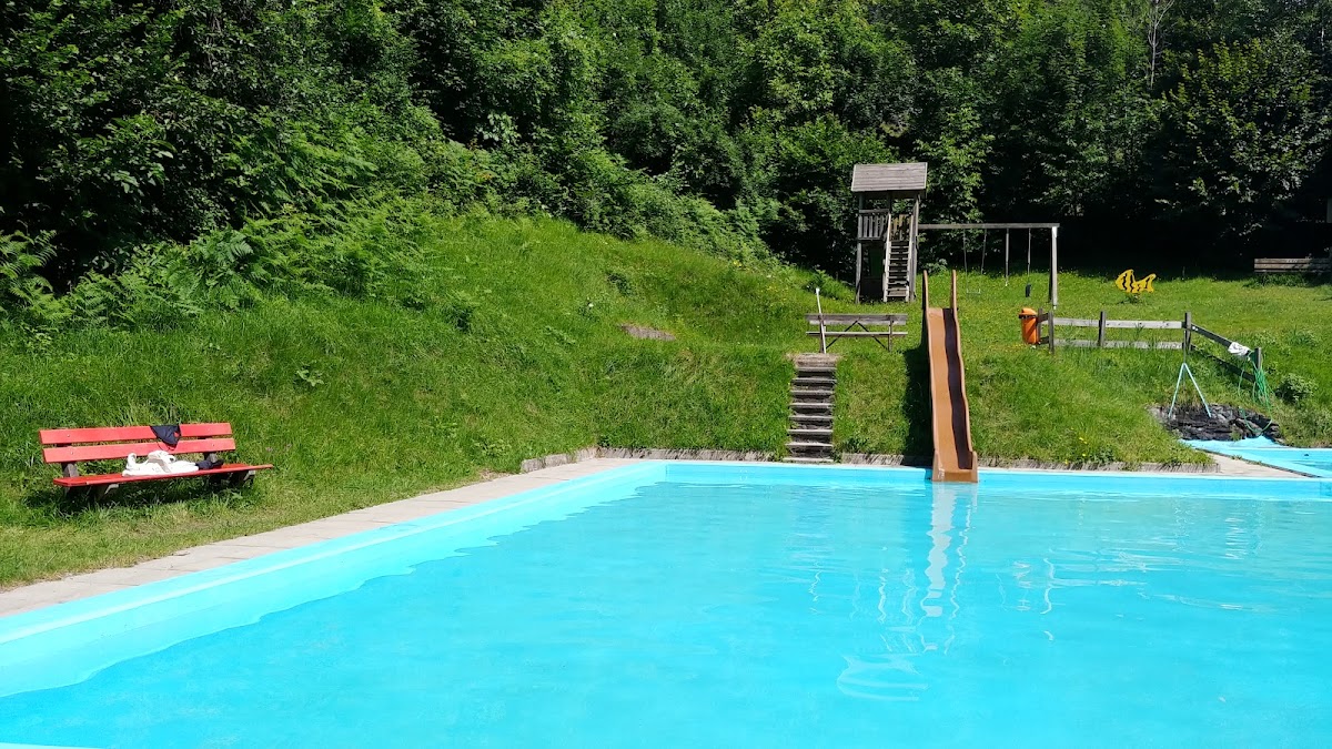 Umgeben von idyllischem Wald bettet sich das Naturbad in der Landschaft Wartaus ein. Für die kleinen Gäste gibt es zudem einen Spielplatz.