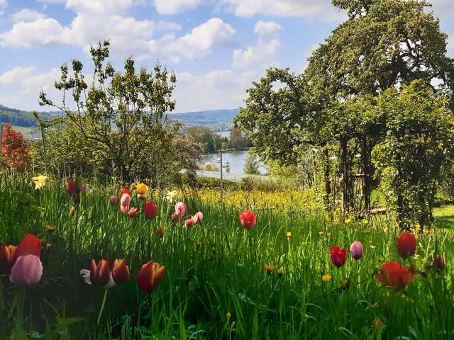 Exklusive Übernachtung in wunderschöner Gartenanlage im einzigen Schlafstrandkorb am Bodensee. Fantastische Fernsicht auf den Untersee und die Höri, Sternefunkeln natürlich inbegriffen. Nicht einsehbare geschützte Lage.