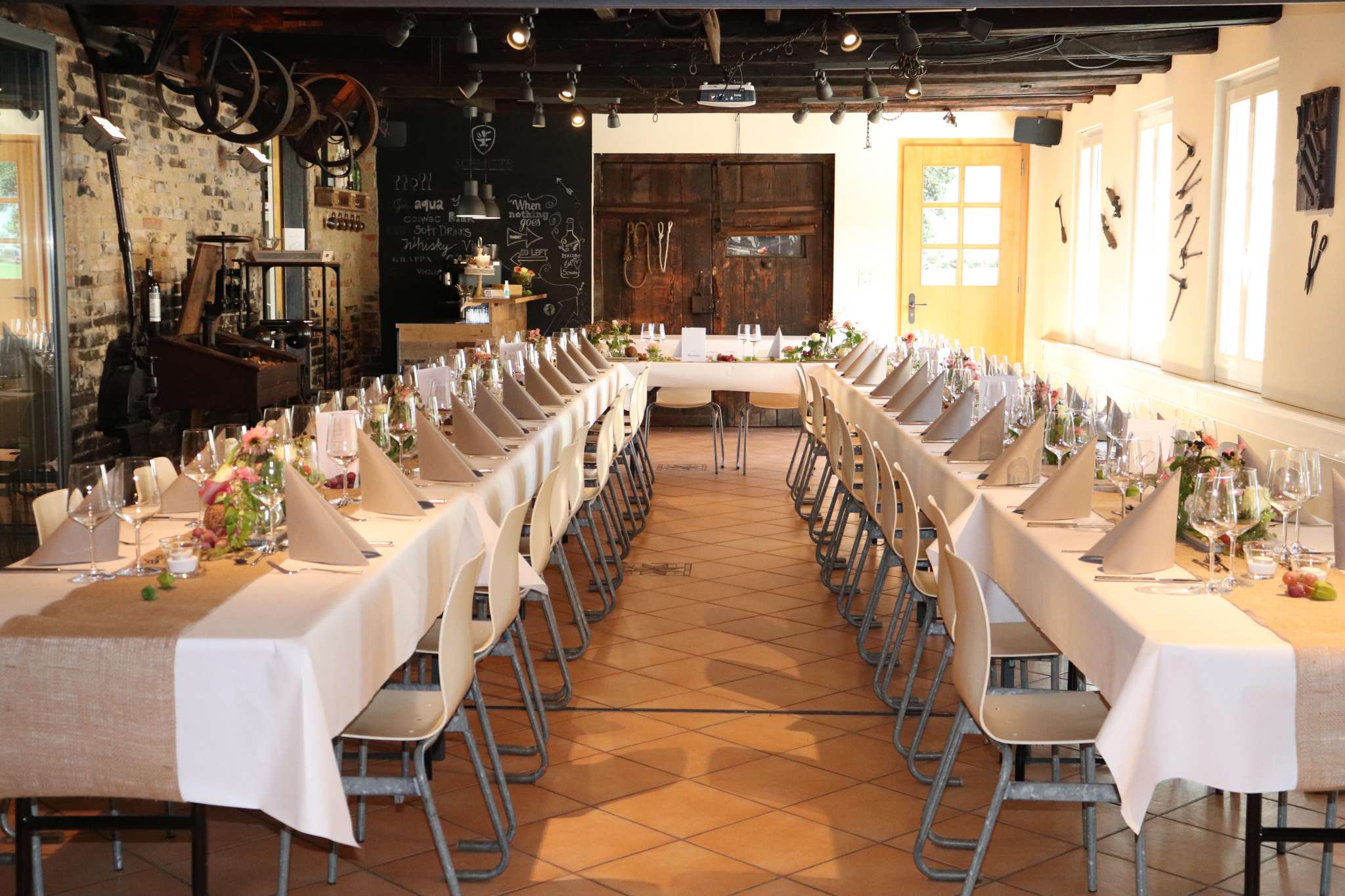 Wo urchige Steinwände auf moderne Technik, Kunstwerke auf gastronomische Highlights und Bestehendes auf individuell Wandelbares treffen, feiern Gäste bis sich die Eisen biegen. Ob für eine Geschäftsfeier, eine Hochzeit oder einen Geburtstag, die Schmitte bietet Platz für 10 bis 60 Gäste.