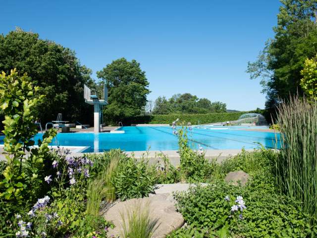 Das Schwimmbad liegt ideal am Dorfrand und ist gut mit den öffentlichen Verkehrsmitteln zu erreichen. Ein originelles Kinderplanschbecken, eine attraktive, ins natürliche Gelände eingefügte Rutschbahn, Tischfussball und Tischtennis sowie ein tolles Beach-Volleyball-Feld und eine grosszügige Rasenspielfläche sorgen für Abwechslung bei guter Übersicht.