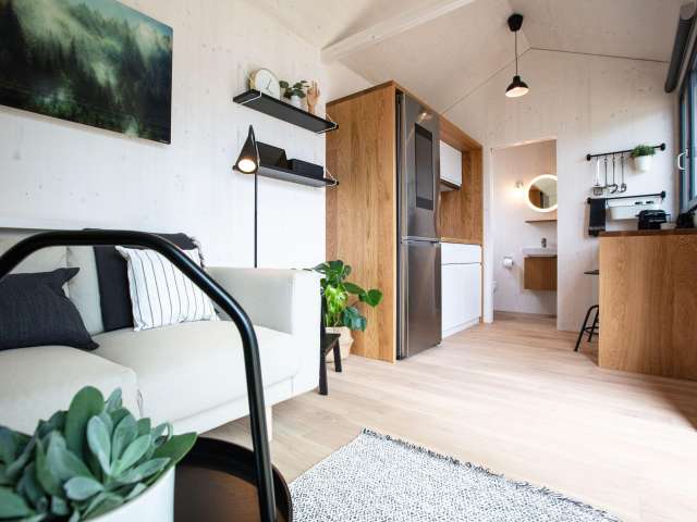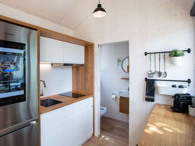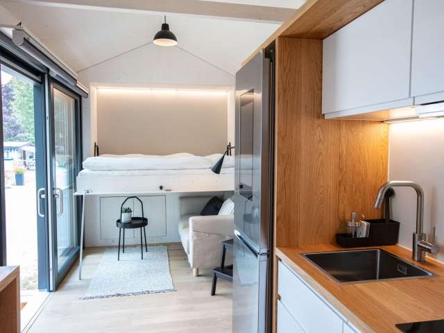 Das Tiny House auf dem Camping Wagenhausen setzt den technischen und stilvollen Kontrast zum naturbetonten Aufenthalt im grünen sanften Thurgau und lädt zur Entdeckung der neusten Möglichkeiten der digitalen Welt ein.