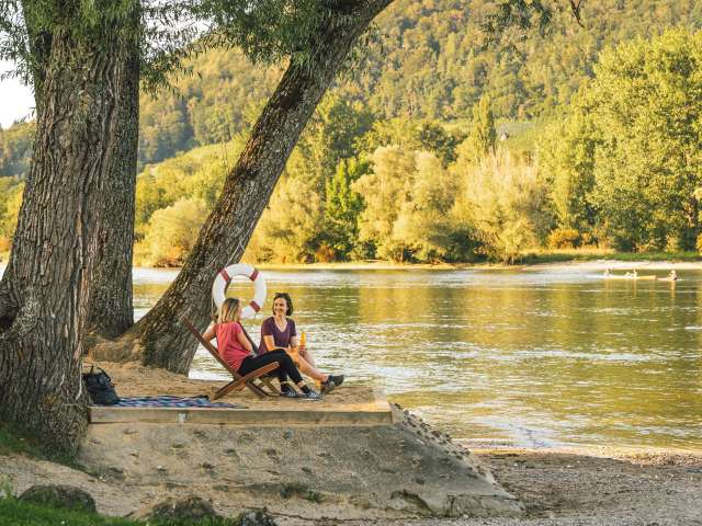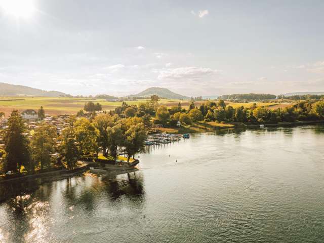 Das smarte Tiny House «hört» dem Gast die Wünsche von den Lippen ab und bietet so einiges: Den Zimmerschlüssel etwa, den gibt's aufs Handy. Möchte man Licht, braucht man es nur laut zu sagen. Wer Fernsehen will, macht das ganz modern über eine App auf dem hauseigenen Tablet, die persönliche Spotify-Liederliste kann über die Lautsprecher im Häuschen abgespielt werden und ein grosser Bildschirm am Kühlschrank wird zum Informationselement für touristische Auskünfte. Der Campingplatz liegt direkt am Rhein und ist idealer Ausgangsort für unzählige Wander- und Velotouren entlang des Wassers. Der Landgasthof überzeugt mit guter Küche und die attraktive Lage für Naturliebhaber lassen jeden Aufenthalt zu wunderbaren Ferien werden. An heissen Sommertagen lockt der campingeigene Badestrand zum Sprung ins kühle Nass.