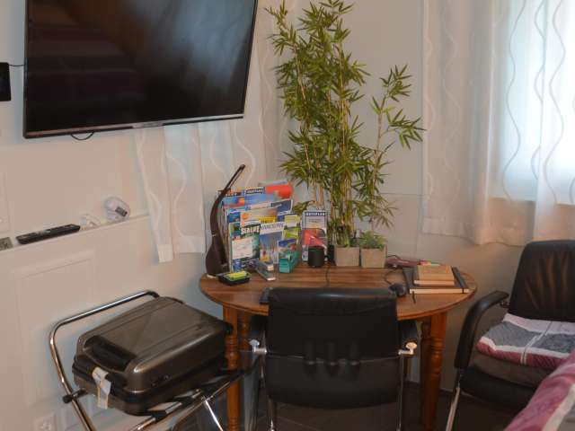 Dieses modern eingerichtete Studio liegt im südlichen Thurgau, in der Region Wil bei St. Gallen. Es erfreut mit komfortabler Ausstattung. Ein eigener Eingang, Sitzplatz und Grossbildfernseher stehen zur Verfügung. Verspannte Rücken werden von einem Whirlpool, Box-Spring-Bett, Massagesessel und Massagedusche verwöhnt. Auch für die Arbeit im Homeoffice ist das Studio ausgerüstet und verfügt über das elektronische Equipment auf neustem Stand. Im Sommer macht man es sich auf der sonnigen Terrasse gemütlich. Auch hier ist Arbeiten möglich. Ein geheizter Pool lädt zum Schwimmen ein. Kaffeemaschine, Teekocher und ein Kühlschrank stehen zur Verfügung. Verschiedene Snacks oder Getränke können gegen Gebühr bezogen werden, wobei nicht alkoholische aufs Haus gehen. Neben dem Frühstück wird auf Wunsch auch Mittag- oder Abendessen angeboten. Grill und Esstisch können mitbenutzt werden. Trotz der ruhigen Lage am Rande von Sirnach ist der Weg zum öffentlichen Verkehr kurz. Mit dem Auto erreicht man innerhalb von 10 bis 30 Minuten Wil, St. Gallen oder den Flughafen Zürich.