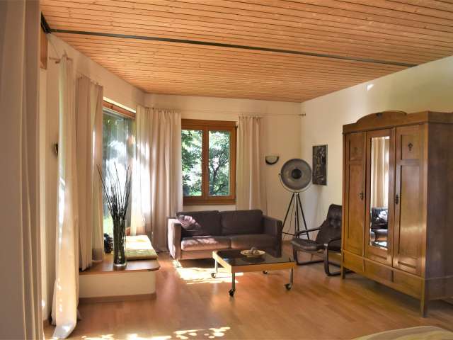 Im Herzen des Thurgaus, am Fusse des Ottenbergs, liegt Weinfelden. Wie der Name schon sagt, wird hier Wein produziert – sehr guter noch dazu. Das Städtchen mit seinen vielen Riegelhäusern ist klein und süss und guter Ausgangspunkt in alle Richtungen des Thurgaus. Das Bed & Breakfast «Rosenstrasse» bietet zwei liebevoll eingerichtete Zimmer an ruhiger, zentraler Lage mit separatem Eingang, wo ein kleines Biotop mit Sitzplatz grüsst. Die Wohnung verfügt über eine kleine Küchenzeile ohne Herd. Toilette und Dusche werden gemeinschaftlich genutzt. Ins Dorfzentrum oder an den Bahnhof sind es nur 5 Minuten zu Fuss. Ab hier startet auch der Weinfelder Weinweg, der den Weinbau und die edlen Tropfen der Region aus einem Weinsafe erlebbar macht. In 40 Minuten ist der Flughafen Zürich mit dem Zug erreichbar. An den Bodensee oder ins Deutsche Konstanz geht’s in 20 Minuten ab Weinfelden.