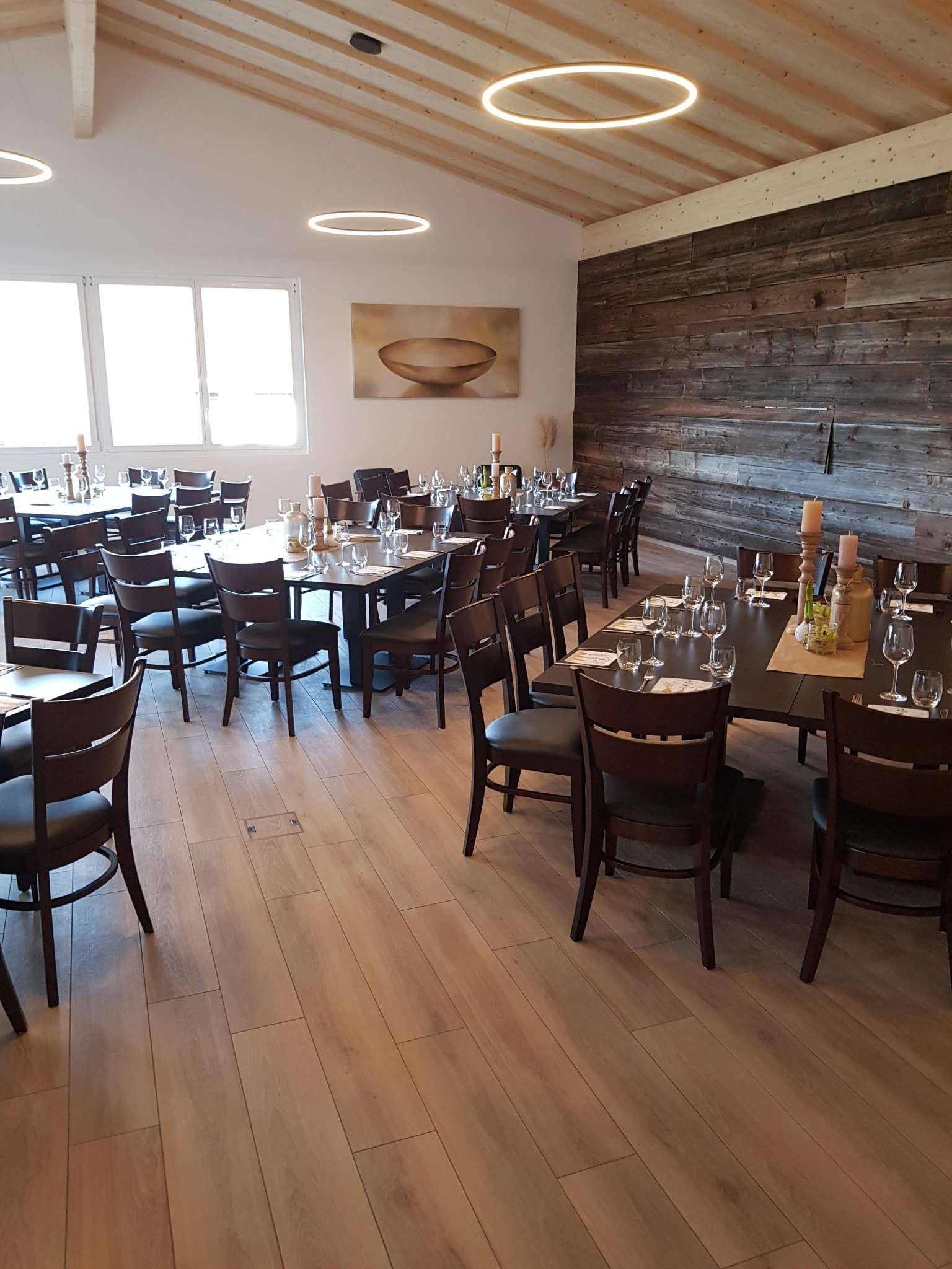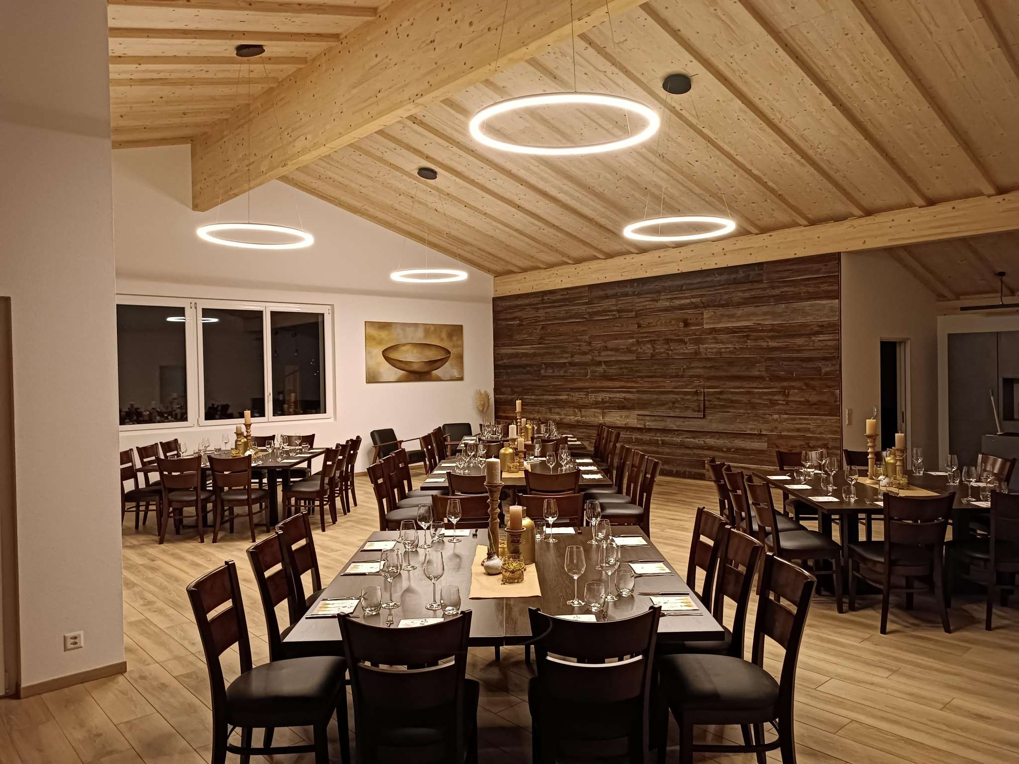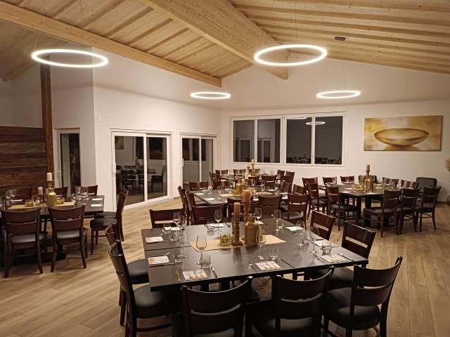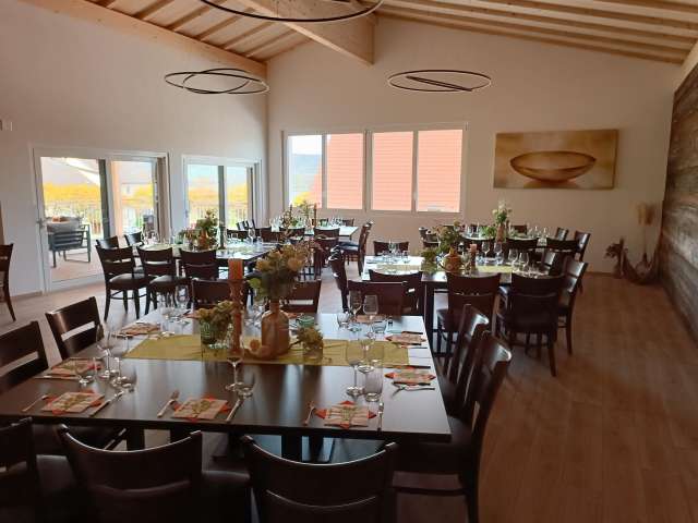 Der moderne Veranstaltungsraum auf dem Engels-Früchtehof bietet Platz für bis zu 70 Personen. Er verfügt über eine erstklassige Ausstattung. Komplette Bestuhlung, grosszügige Tische, Beamerwand mit Beamer sowie Geschirr sind vorhanden. Wer selbst anpacken möchte, dem steht eine tolle Gastroküche zur Verfügung, ausgestattet mit Buffet, Induktionsfelder, Tellerwärmer, Gastro-Steamer, Kühlschrank, Geschirrspüler, Kühltheke, Kaffeemaschine und einer Auswahl an Getränken. Eine attraktive überdachte Aussenterrasse mit malerischem Blick auf den Untersee und die Burg Hohenklingen lädt zum Pausieren und Geniessen ein. Viel Holz schafft ein wohliges Ambiente. Familie Engel bietet in ihrem Hofladen Gemüse und Früchte aus eigener Produktion zur Verwendung an. Ein Apéro mit kalter Platte sowie Dekorationen und Floristik richtet das Familienunternehmen in dritter Generation ebenfalls gerne aus. Auf Wunsch organisiert der Früchtehof für die weitere Verpflegung ein passendes Catering mit einem regionalen Partyservice. Gästen steht es aber auch frei, ihr eigenes Catering mitzubringen.