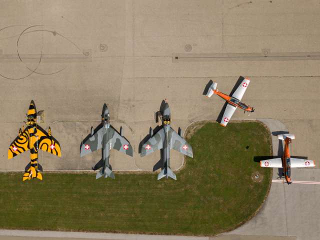 Im Museum werden Flugzeuge einerseits aus ehemaligem Bestand der Schweizer Armee, andererseits auch aus britischer Produktion ausgestellt.