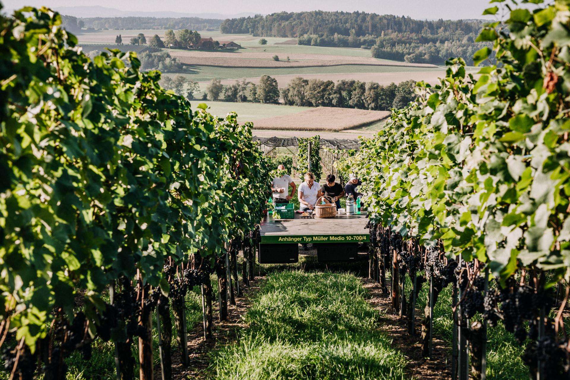 Im Weinbau setzt die Familie Haag alles daran, aus gesunden, reifen Trauben klare und authentische Weine hervorzubringen. Auf 4 ha pflegt die Familie Haag sechs verschiedene Traubensorten: Müller-Thurgau, Cabernet Blanc, Sauvignon Blanc, Pinot Gris, Pinot Noir und Zweigelt. Sortenreine, klar strukturierte Weine, Innovation aber auch viel Passion, Begeisterung und Herzblut für das Handwerk zeichnet die Winzerfamlie aus. Tipp: Degustieren Sie Nicole's Lieblingswein, den Goldgrüebli bei Ihrem nächsten Besuch.