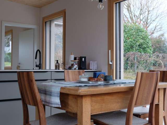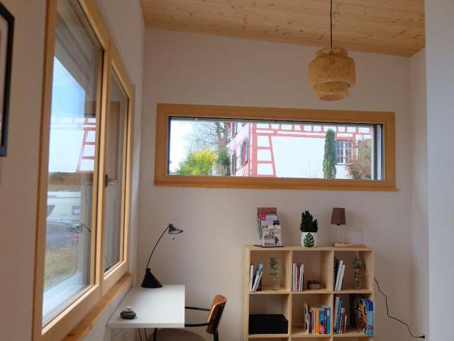 Haus Frida in Altnau ist ein neu erbautes Ferienhaus und bietet auf 56 m2 Platz für 2 bis 3 Personen. Die Unterkunft überzeugt mit einer warmen, gemütlichen Atmosphäre und ruhiger Lage am Bodensee. Zur Ausstattung gehören eine voll ausgestattete Küche, ein Arvenbett, ein separates Schlafzimmer oder Arbeitszimmer mit kleinem Schreibtisch sowie eine grosszügige Terrasse mit Naturgarten und Gartenmöbeln. Teilweise Seesicht unterstreicht die besondere Lage. WLAN mit Glasfaser und TV sind vorhanden. Direkt vor dem Haus beginnen Fahrrad- und Wanderwege entlang des Bodensees und durch die typische Thurgauer Landschaft mit Obstgärten und charmanten Uferorten. Altnau verfügt über Einkaufsmöglichkeiten sowie Anschlüsse an Bahn und Postauto. Haus Frida ist ein ruhiger Rückzugsort für Erholung in naturnaher Umgebung. Haustiere sind nicht erlaubt.