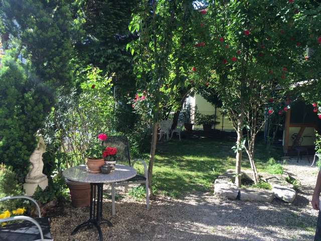 In dem denkmalgeschützten Jugendstilhaus befindet sich im Hochparterre die grosszügige, zum Teil neu renovierte Ferienwohnung. Die Wohnung, bestehend aus einem Doppelschlafzimmer, offenem Wohnschlafzimmer, Wohnküche, Réduit mit Garderobe, Dusche, WC, Lavabo, bietet Platz für 2 bis 5 Personen. Die Lage ist zentral, ruhig, sonnig, mit Gartensitzplatz und Grill, Liegewiese, Raucherbalkon, Dauerparkplatz, gedecktem Fahrradunterstand (Unterstand auch im Keller), Fernseher, Waschmaschine bei längerem Aufenthalt und Internet auf Wunsch.