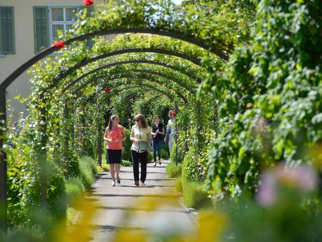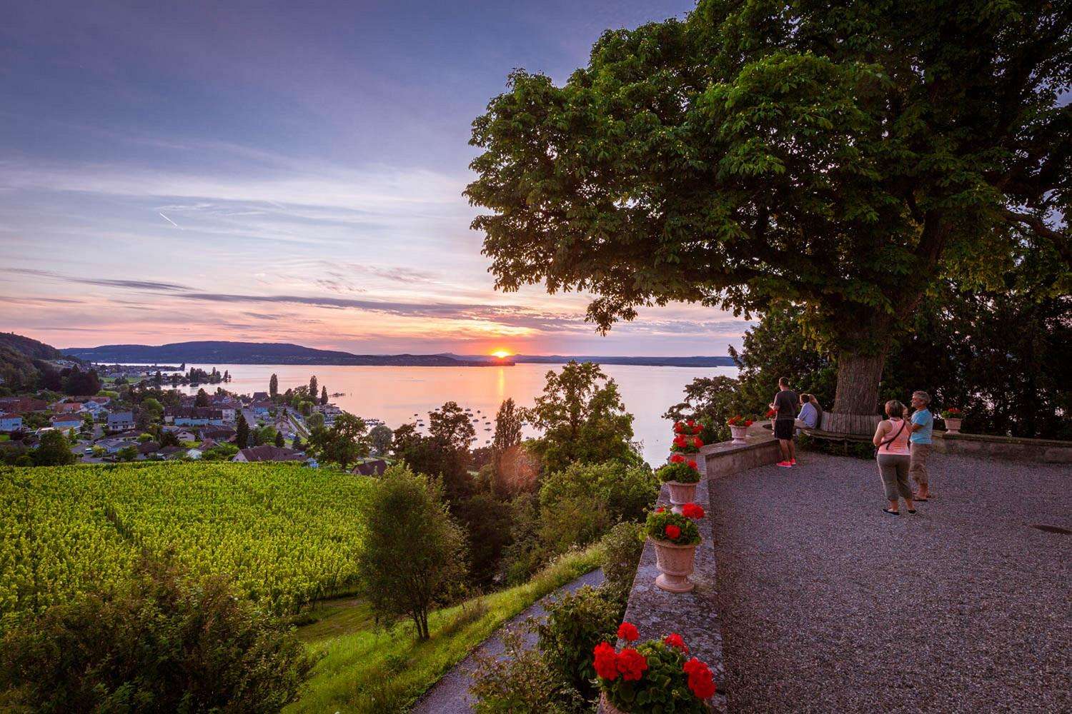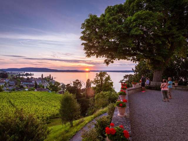 3-Stern Gartenhotel, Bistro mit Küche nach der Philosophie von Slow Food, grosse Gartenterrasse mit Blick auf Schloss Arenenberg.