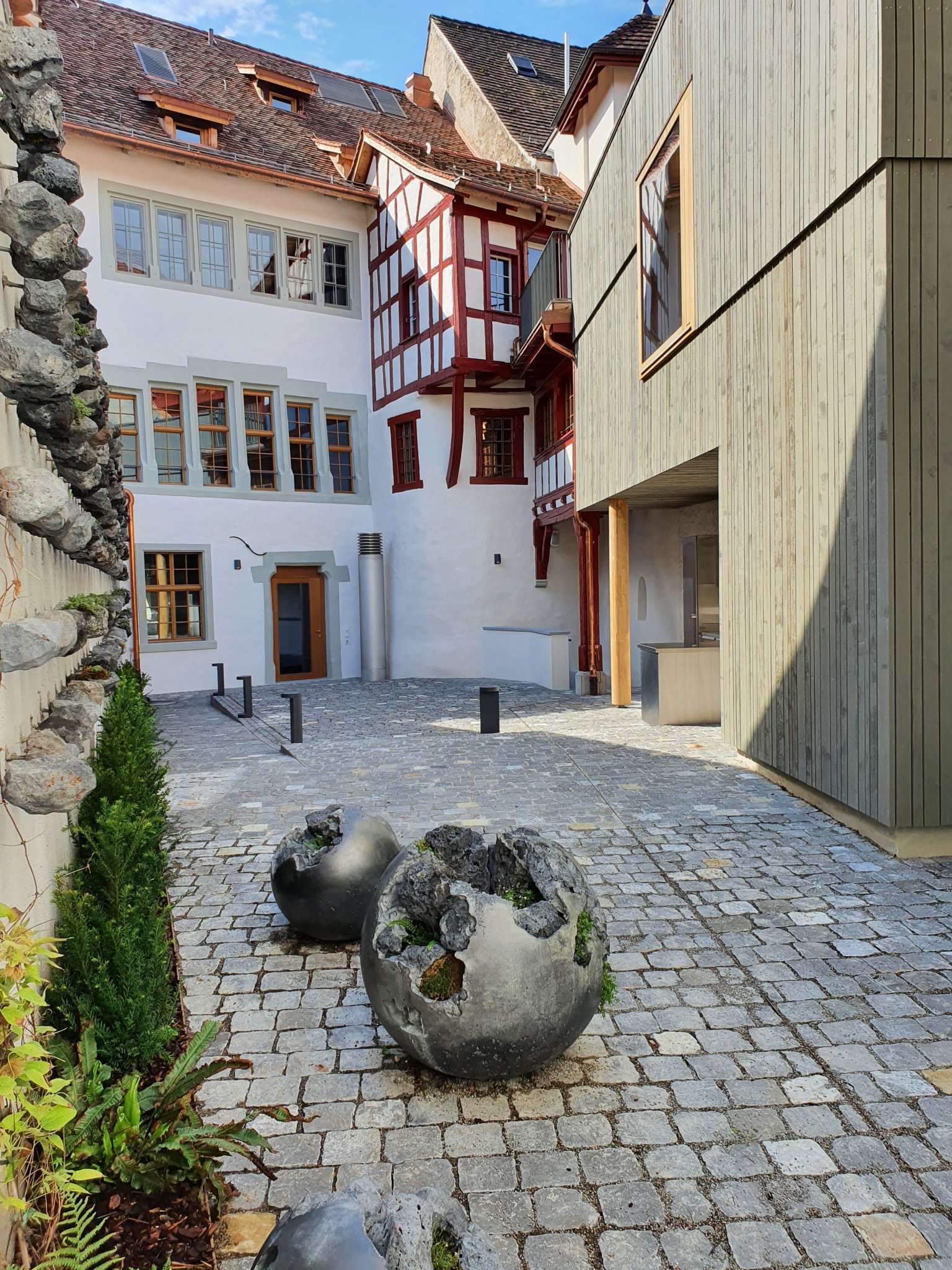 «Stone Field» besticht auf den ersten Blick durch seine strenge Ordnung, die jedoch durch absichtsvoll gesetzte Unregelmässigkeiten aufgebrochen wird. Kleine Farne und Moose siedeln sich im brüchigen und porösen Material an. In «Rock Suspension» kehrt North den unterirdischen Weg des Wassers nach aussen. Die an einer Kette aufgefädelten Steine erinnern an die japanische Regenkette (kusari-toi). «Remainders» besteht aus einer Serie von Sphären, die der Künstler selbst gegossen hat. Die Sphären stehen sinnbildlich für die Vollkommenheit des Unvollkommenen.