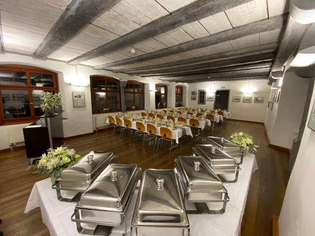 Im historischen Gewölbekeller des Museums sowie im angrenzenden Innenhof mit Barockgarten und dem darin liegenden Häuschen «Schniderbudig» darf heute gefeiert und getagt werden. Vor mehr als 400 Jahren war die Schniderbudig Tuchhaus für den Leinwandhandel. Heute steht sie für Veranstaltungen zur Verfügung und bietet Mobiliar für bis zu 70 Personen sowie eine professionelle Küche.