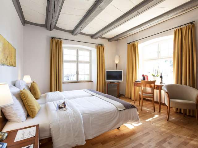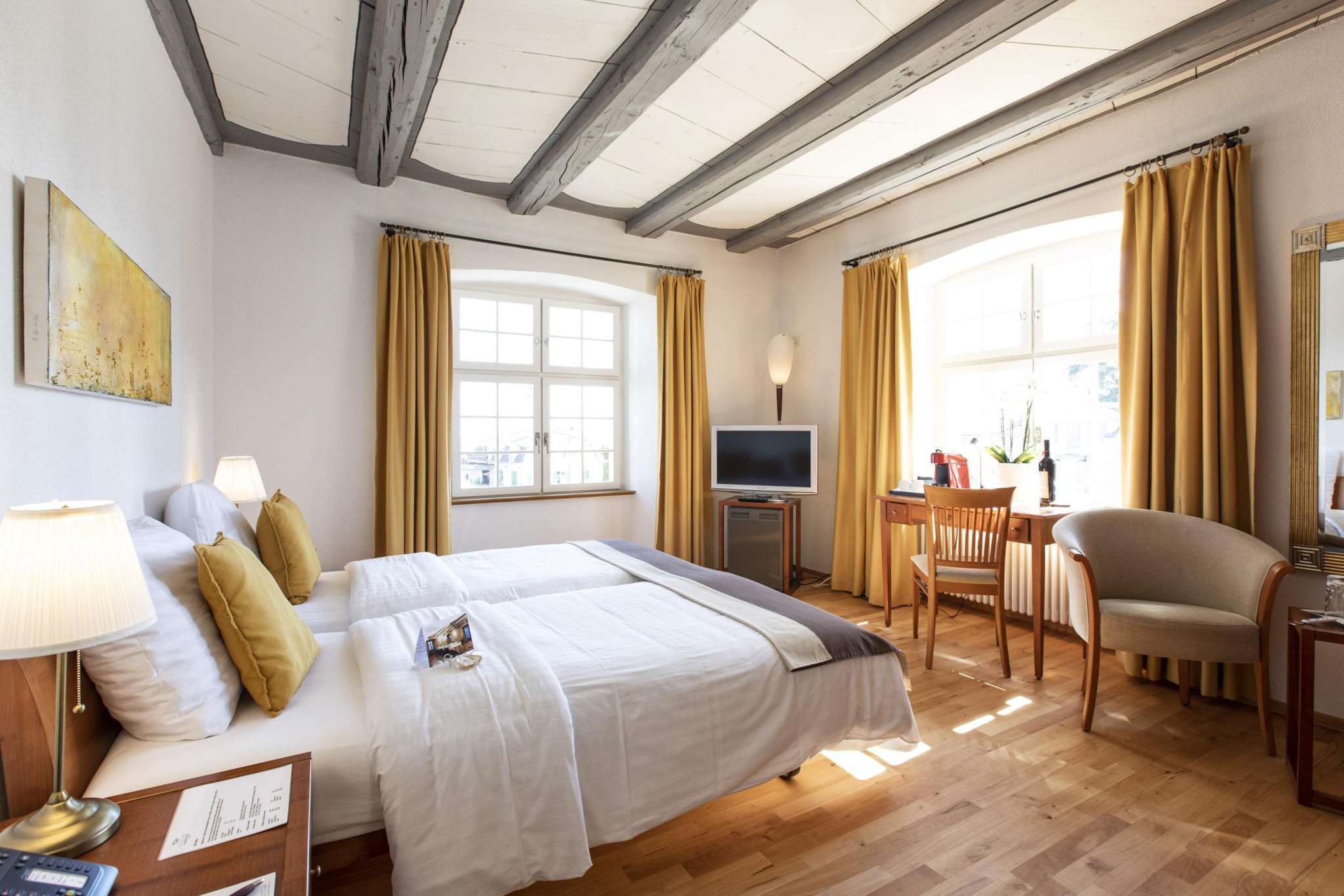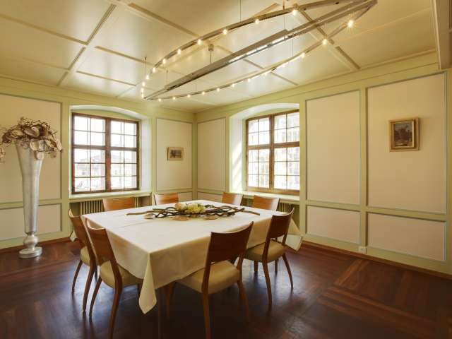 Das Hotel selbst begeistert mit 11 geschmackvoll eingerichteten Zimmern. Besonders die geschichtsträchtige Römerstube und das Turmzimmer schaffen den idealen Rahmen für Tagungen, persönliche Events oder stilvolle Feiern.